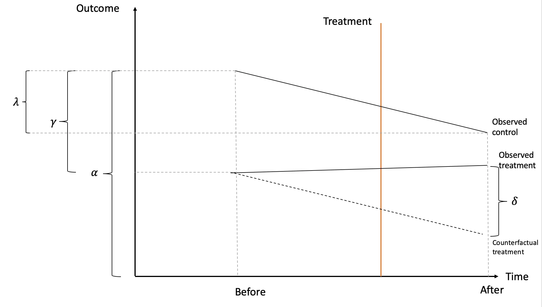 | Treatment - Control | $\gamma$ | $\gamma+\delta$ | $\delta$ |