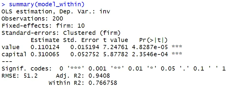model_within_plm <- plm(invest ~ value + capital,
