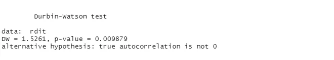 We see a statistically significant negative effect of the treatment on abortions, which is also what Gonzalez (2013) finds in her paper. Now, let's run some of the robustness checks mentioned above. We start by testing for serial correlation in the residuals using the Durbin-Watson test.