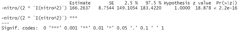 deltaMethod(mod1, "-nitro /(2*`I(nitro^2)`)", rhs=1)