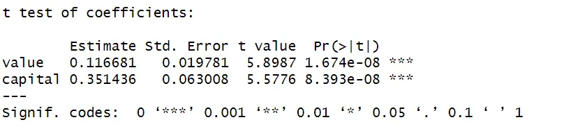 model_plm <- plm(invest ~ value + capital,