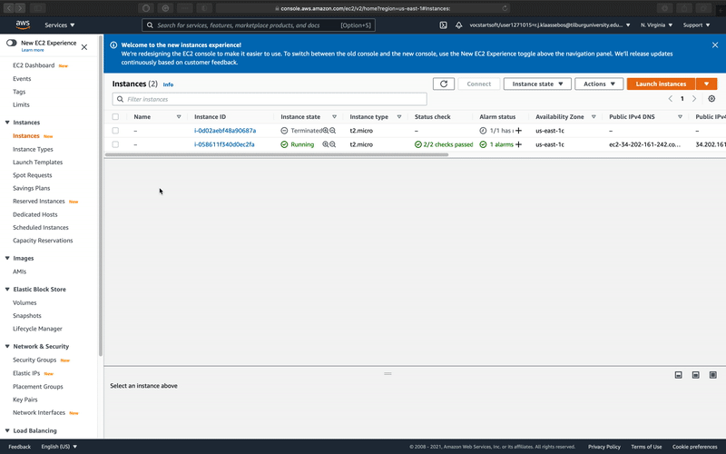 Even though the very basic VMs can run for free forever, it is good practice to shut down inactive VMs. After all, you don't want to find out at the end of the month - once you receive your bill from AWS - that you accidentally left an instance running in the background. To terminate a VM follow the steps below: