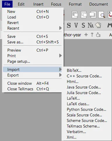 TeXmacs is a more user friendly editor than $\LaTeX$, having an interface similar to Microsoft Word, but more scientific inclined. It offers many options for importing and exporting files. For importing files it has the following options: