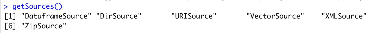 - VectorSource - for a vector of characters interpreting each component as a document