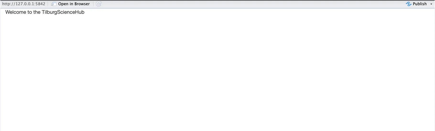This basic app displays the welcome message: "Welcome to the TilburgScienceHub".