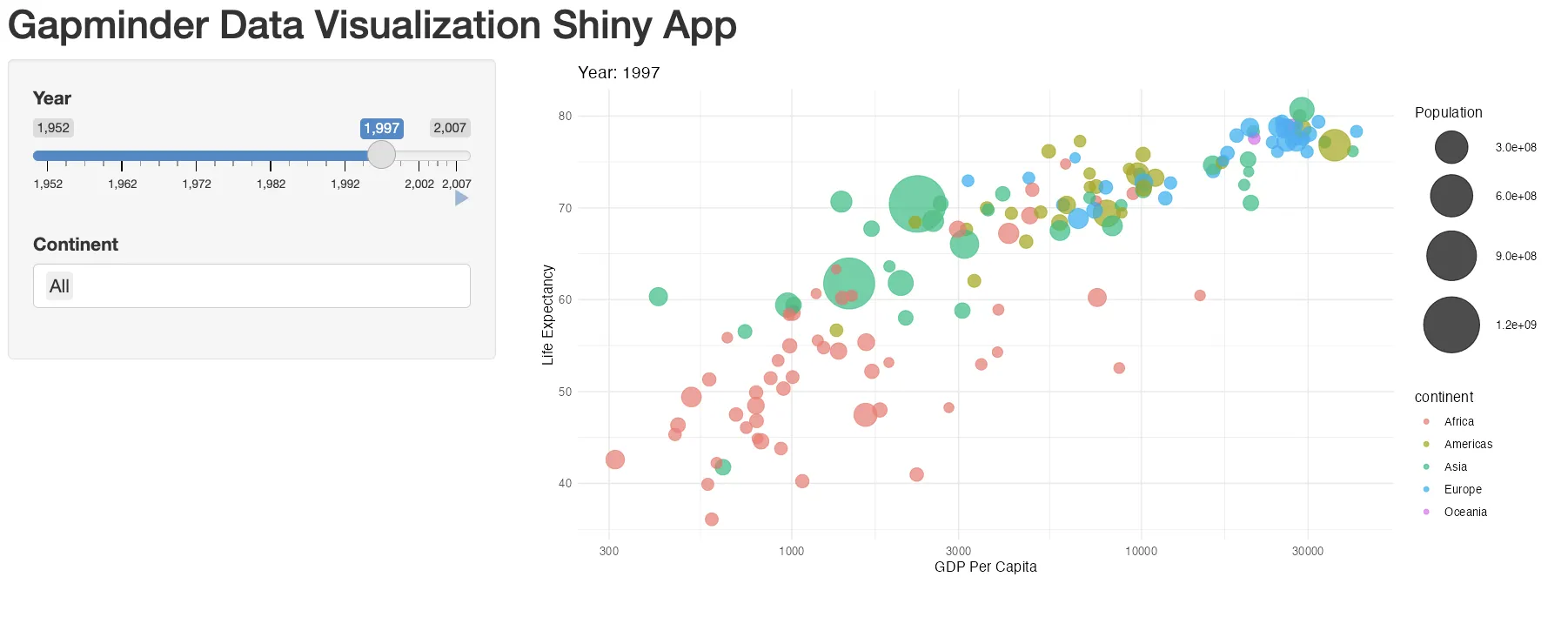By the end of this article, you'll grasp the fundamental concepts of Shiny app architecture, including the interplay between UI (User Interface) and server components. Additionally, you'll learn to implement basic interactivity and customization features. We'll apply these concepts to develop an interactive web application using the Gapminder dataset, providing a practical, hands-on experience.